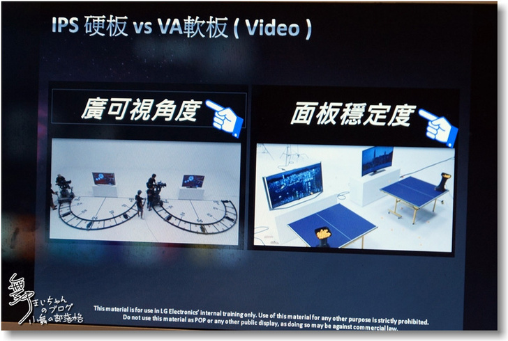 ▲而IPS的硬板和VA的軟版在色像呈現上,這裡也透過一小段影片來表達軟硬板和平面/曲面電視,在同樣條件下畫質的呈現。