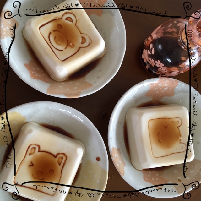 只要把塑膠版倒扣在豆腐上,輕輕一壓,倒上醬油時,就會顯現出可愛的臉孔喔!