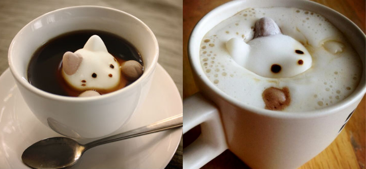看到貓咪浮在飲料上,漸漸融下去的樣子,超級療癒