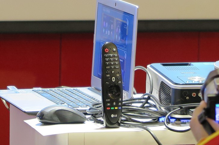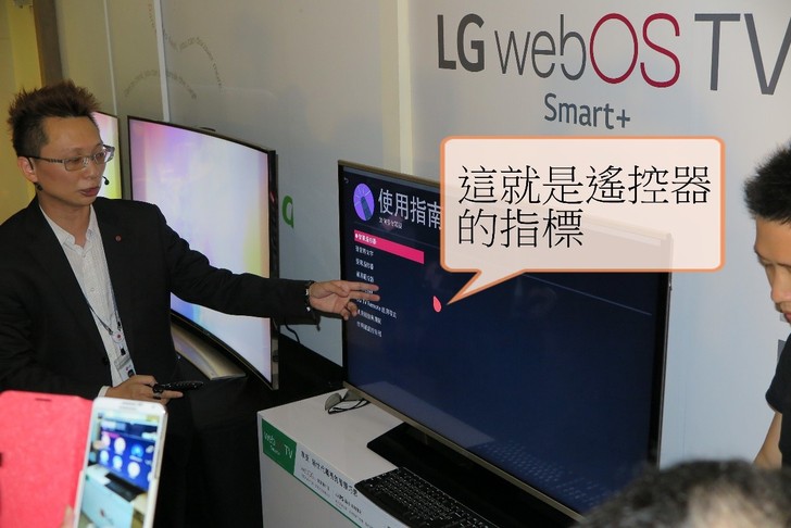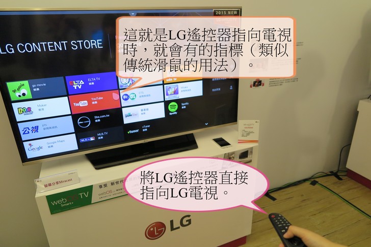 ①LG的遙控器就像在空中的滑鼠般,指到哪裡,指標就會移到哪。