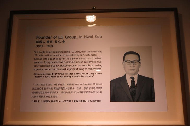 這是LG創辦人,會長具仁會的照片;以及他所說的話。