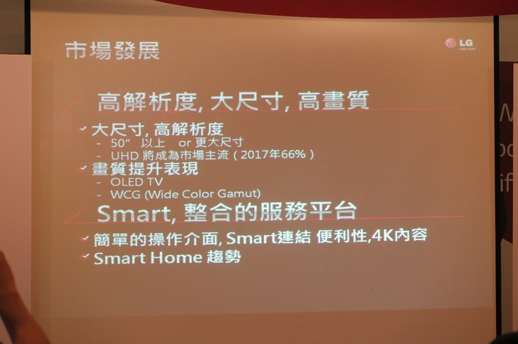 包括簡單的操作介面,Smart連結、便利性、4K內容、Smart Home趨勢。