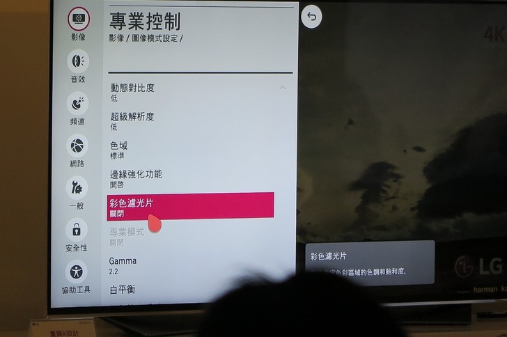 (五) 如果你需要特殊情境,還可以選擇LG電視選單中「專業控制」中的「彩色濾光片」功能,保證你看電視時有特別的感受。