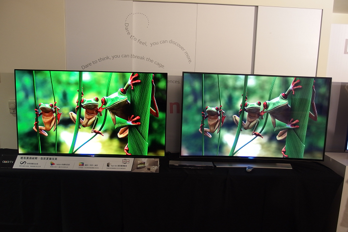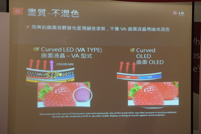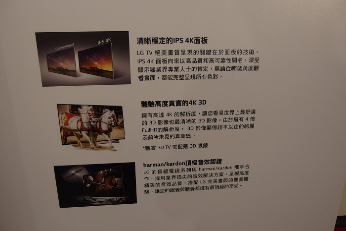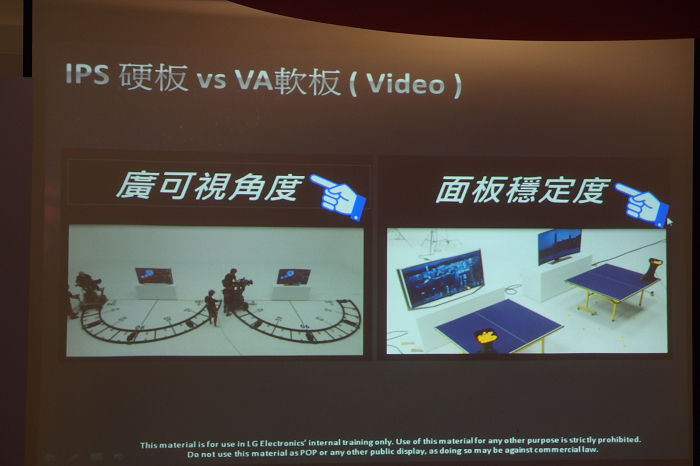 同等級的液晶電視(比對了***來看),我只能說 輕鬆完勝,一開始不知道在展示什麼,就默默覺得一台的色溫和顯像非常優異,後來才知道是LG獨立出的一個展示比較,讓我們了解不同面板所呈現出來的差異,還有還原真實顏色的重要性,畢竟用眼睛看~是騙不了人的!