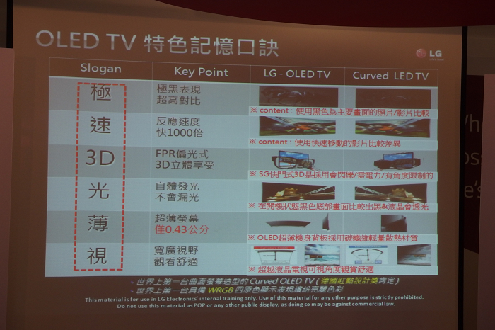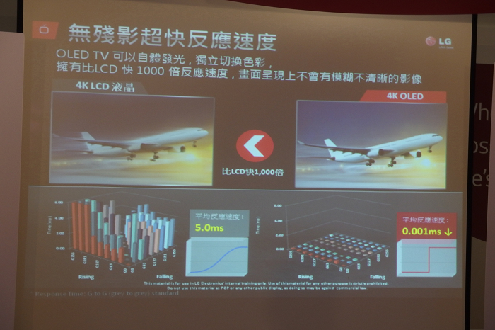 OLED的特色,讓我在下一台液晶電視對LG充滿興趣(當然價格也是個考量,但聽說LG的價格都相當實惠,看來可以研究研究準備入手啦~YA!)越來越高的畫質,越來越大的螢幕,還有可上網功能!這真的都相當便利也很符合操作,主推的超快反應速度,跟現今的寄宿完全是不同等級(目前為ms當單位;OLED是用us為單位!),這是要怎麼比呀!