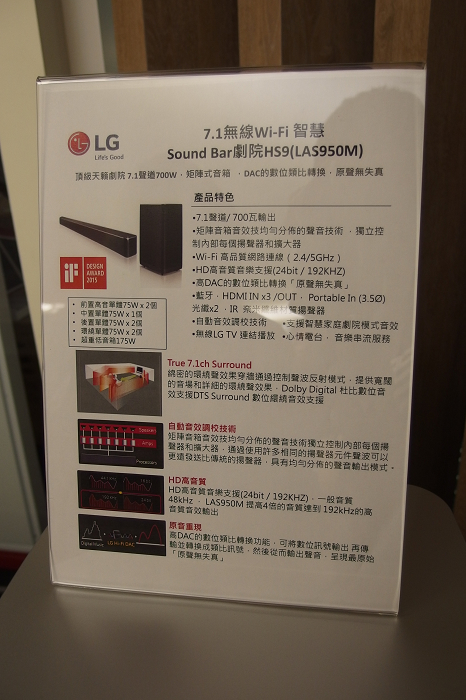 原本就預期LG的電視優異,沒想到他的音響效果也這麼的棒~剛好站在音響劇院組旁邊,運用藍芽無線傳輸,音樂不失真,也省去了多餘的布線和拉線麻煩,就能讓你聽到震撼悅耳的好聲音!再開啟重低音,真的被那強強的音場給撼動到,高低音的指向性,角度更是絕妙,讓你在客廳就能輕鬆享受好音樂,身歷其境,融入其中。(只是好奇的是~音響有防水嗎?!哈 我女朋友聽到整個心動,好像在浴室也放一組,洗澡時可以用藍芽撥放喜歡的音樂!"應該會伴隨著她的魯拉拉聲")