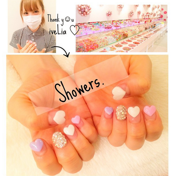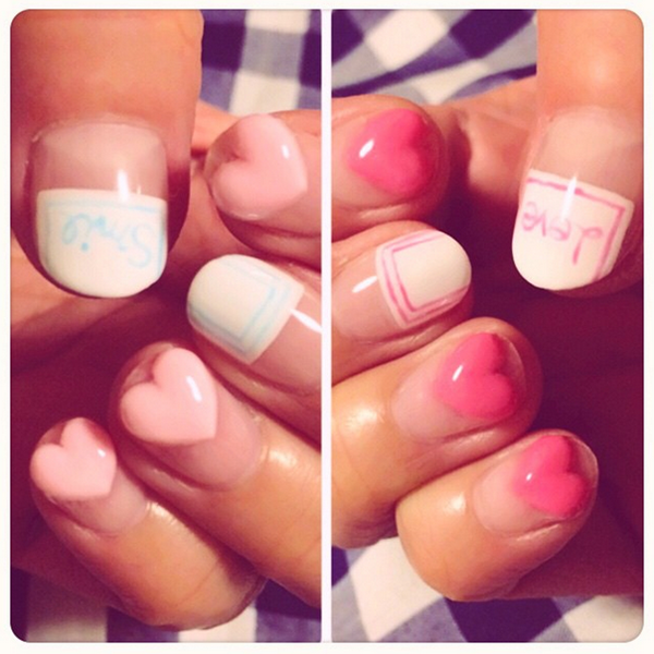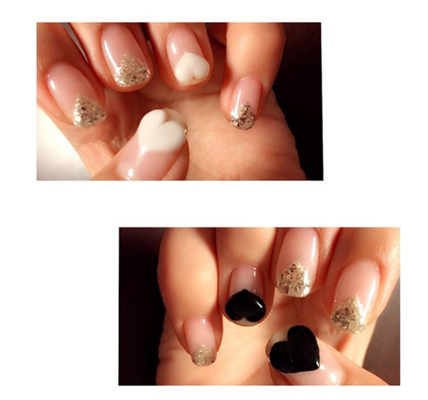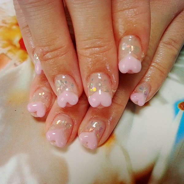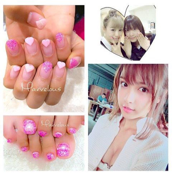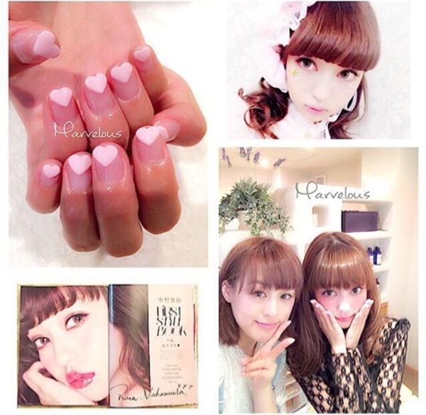 松本愛也有做過這類型的指甲,像這樣交替的愛心也很可愛 ♡