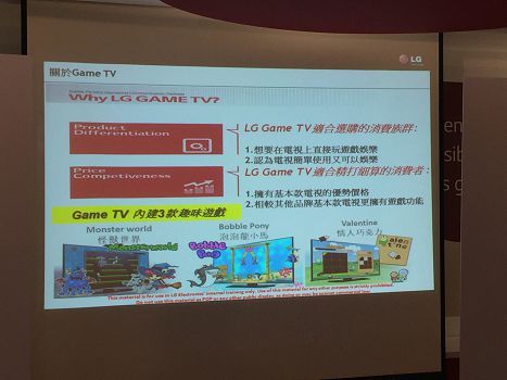 PM接下來針對LG家族電視做簡單的介紹。UHD TV、OLED TV、GAME TV、WebOS TV等等。