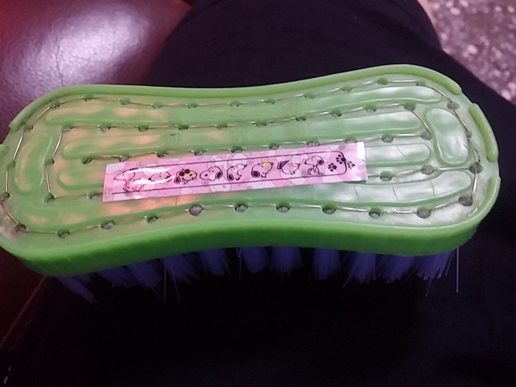 ▲ 有防滑握把的牙刷照樣可以貼上,不過,當然周圍部份會無法貼密,這種建諘繞一圈貼會較好