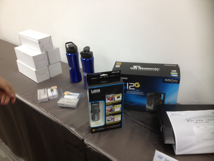 入場很先看了這次大家都期待的獎品,讚讚讚,感覺很不錯,我有認真回答問題獲得一個保溫瓶!!