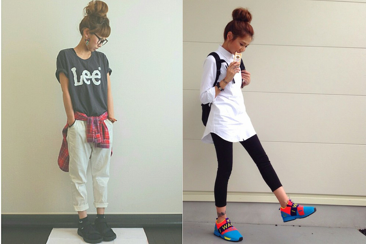 帶著女孩氛圍的包子頭,與中性的男友風混搭