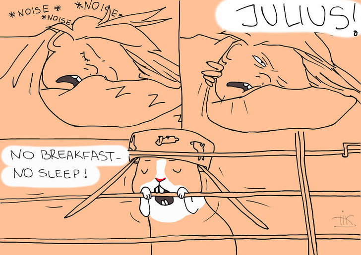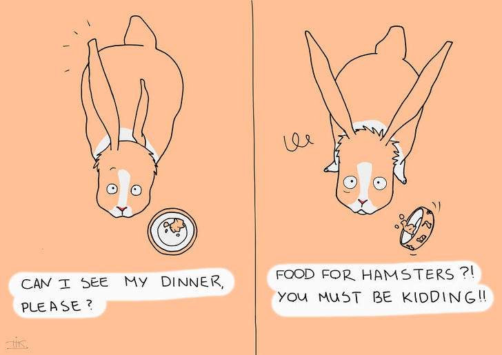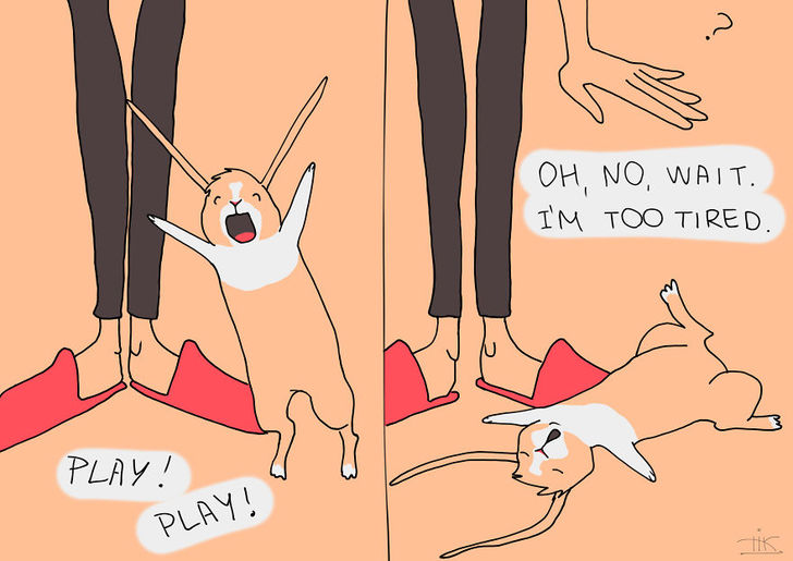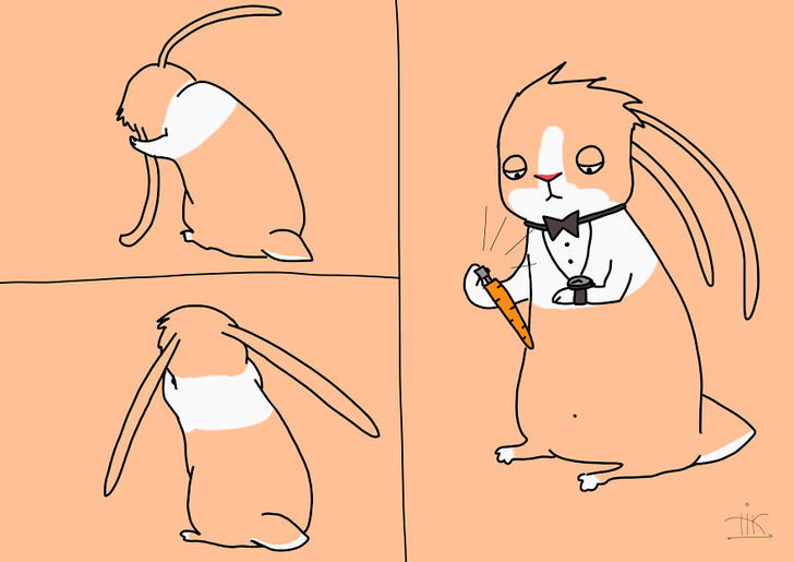 她說每次都開玩笑的說,她們家的兔子就算早上再 High,把家裡弄的在亂,只要聽到你的開門聲音,牠都會門口用「楚楚可憐」的眼神看著你,就好像是告訴你,牠今天有多乖,那些雜亂都不是牠用的一樣。