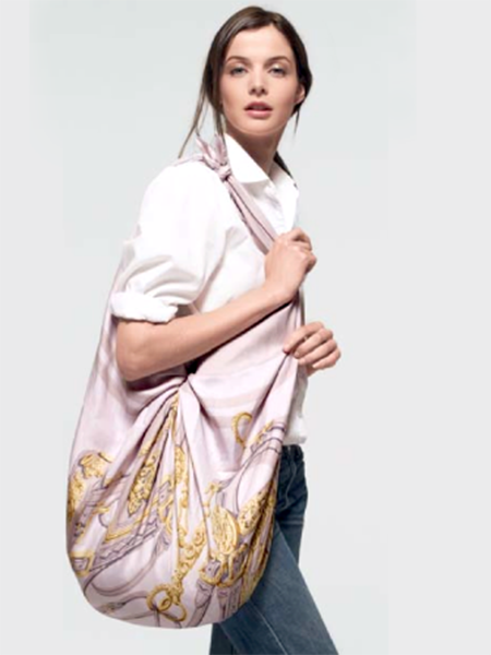 大家可以像圖片上那樣,把絲巾綁在把手那邊,看起來就像不同款的包包了!