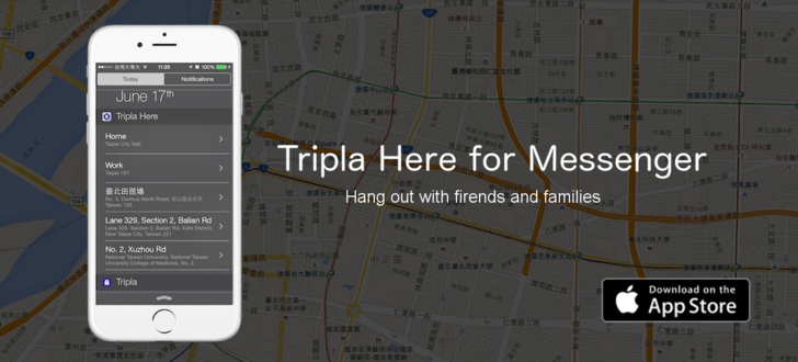 「等一下約哪碰面啊?」各位是不是有遇過這個問題呢?報路名又怕太長對方找不到、報地標又怕對方不知道,該怎麼辦呢?如果你有這樣的困擾,讓【Tripla Here】來幫助你!【Tripla Here】是一款以「傳送位置」為主的APP,利用拖拉的方式定位後透過LINE或Messenger,傳送聚會地點給對方。Messenger使用者能直接在Messenger中回覆Tripla Here的位置,讓你一邊聊天一邊利用地圖討論聚會地點。