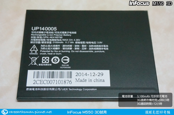 ▲M550 3D使用的是顆3100mAh的鋰電池,沒有快充的功能,電力從0%充電到100%需要4個小時,有點久...