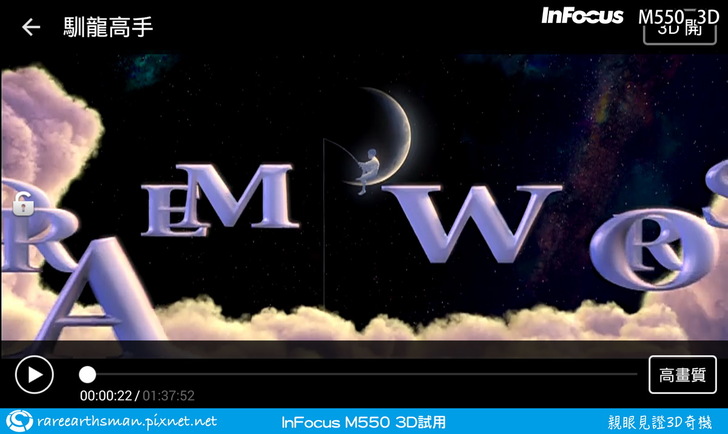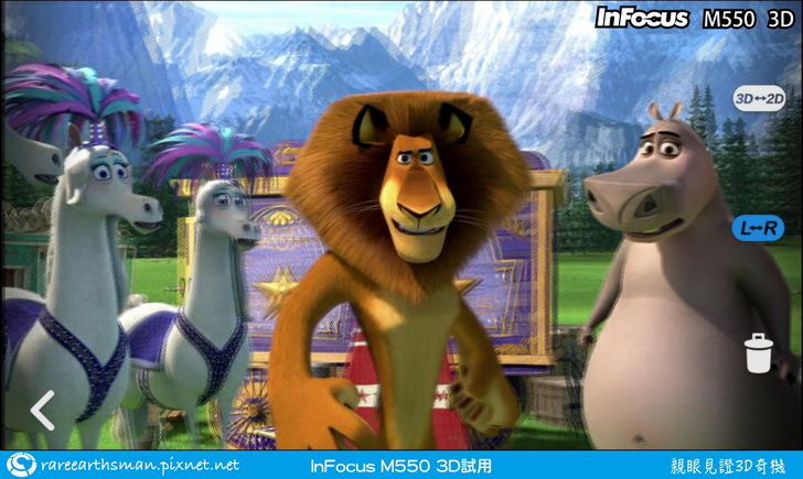▲3D播放器裏播放有3D效果的影片,它的模糊效果,也就是視差的效果沒這麼嚴重,前張2D的影片模擬成3D影片時就好像硬是將一個影像複製成2個影像,而且2個影像離很遠,其實感覺起來沒有模糊感,只是覺得有2張圖的疊圖,3D立體感不是好;但是3D效果的影像,雖然也是複製成2個影像,但是這2個影像的位置很相近,所以感覺是有點糊掉的,實際用眼睛看很快就能感覺到3D的立體效果。