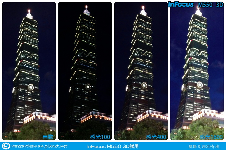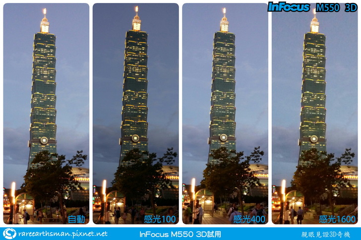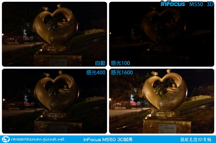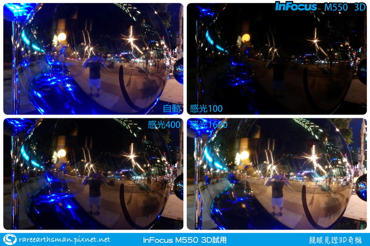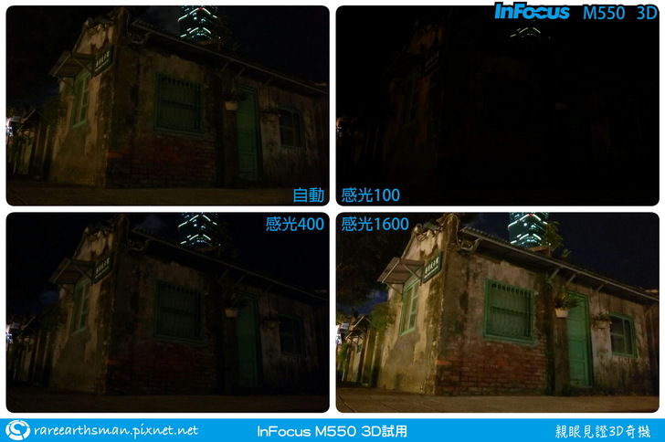 ▼在夜間低光源的狀況下調整感光度,從自動/100/400/1600來做測試,當然結果都是感光度調成1600是最亮的,但是事實上使用自動的方式並不會差1600很多,但是畫面相對的穩定不少。