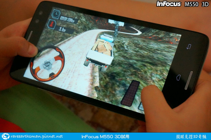 ▲其實3D泥土卡車的立體感不會太強,應該是說它是立體的,但是它3D的強度不是很高,所以其實比較接近立體遊戲,我女兒滿喜歡玩3D泥土卡車的,反正就是亂開車,開到路邊回不去就往山上開,整條路隨便開,好玩就好。