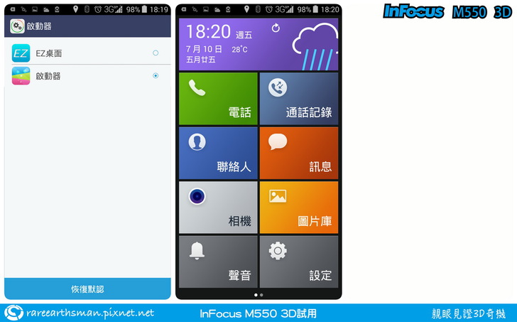 ▲在設定/裝置/默認程式設定/啟動器中可以選擇EZ桌面,這種桌面畫面簡化,字體放大,適合當老人機使用。