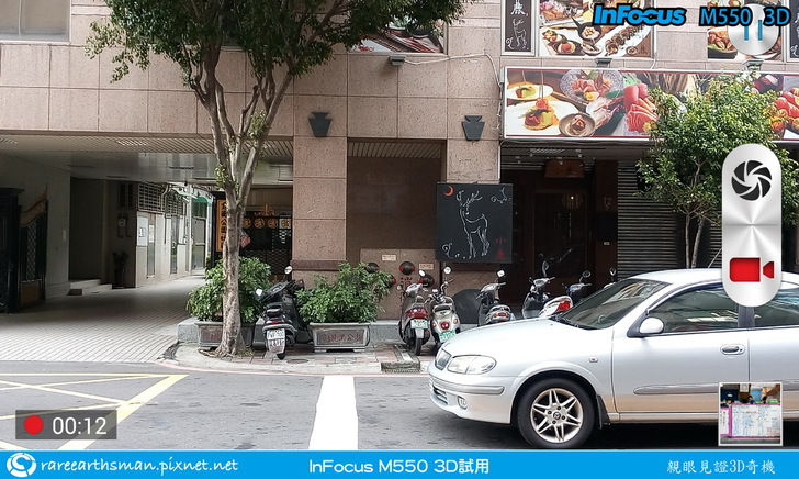 ▲M550 3D的錄影模式,按下錄影鍵後錄影圖示會變成紅色,上方會出現暫停鍵。