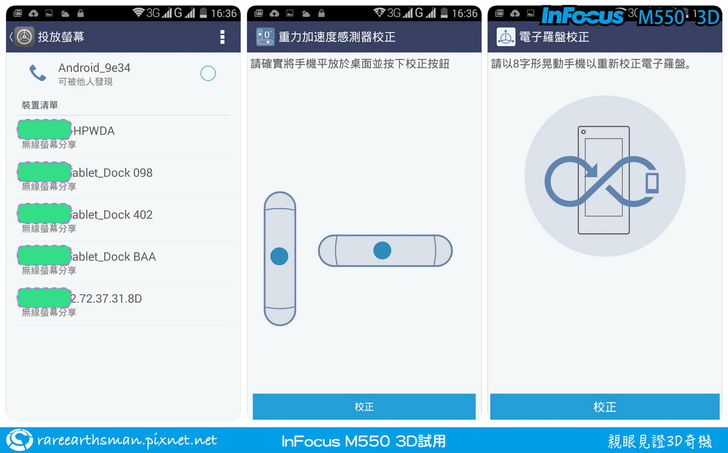 ▲顯示內還可以選擇投放螢幕/重力加速度感測器校正/電子羅盤校正。