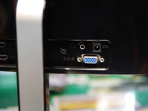 接下來看看輸入端子的部分,可以看到有VGA。另外還有3.5MM輸出孔及電源孔。