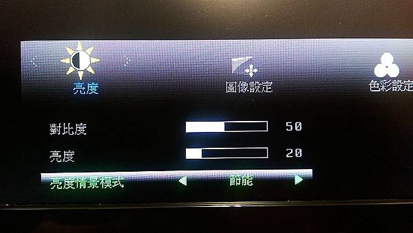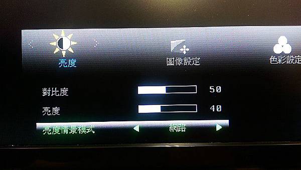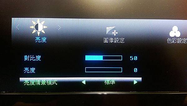 首先是亮度的情境模式標準,在標準模式下可以自訂你的亮度與對比度,其他模式下則不行自訂。