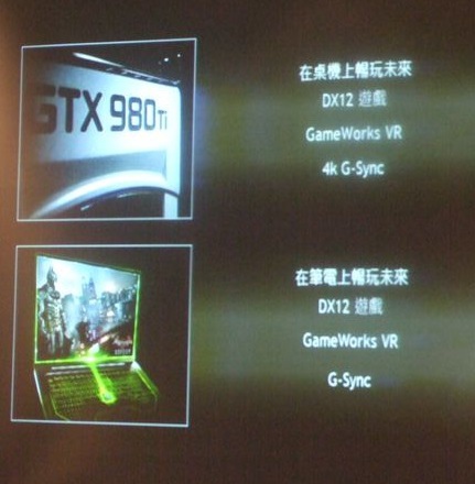 DX12可以看到火焰、光線、煙霧是由許多粒子組成,因此需要許多運算單元(cores)來進行運算,而980TI大約有2千的運算單元(cores),就可以讓這些粒子的影像處裡的很漂亮。在底層API部分,而NVIDIA的顯示卡支援這個API,這個部分競爭對手是沒有的。