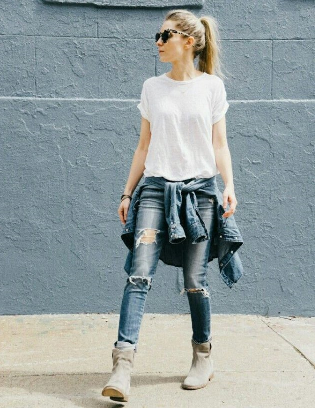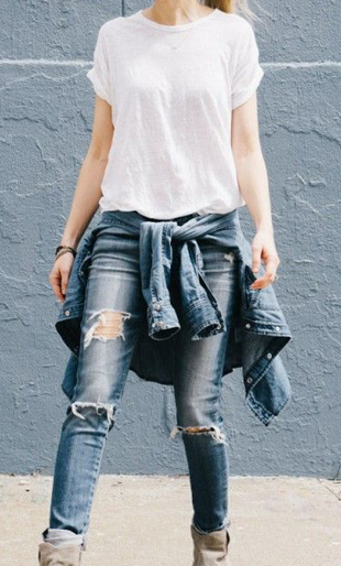 刷白的破牛仔褲則可以營造男孩風