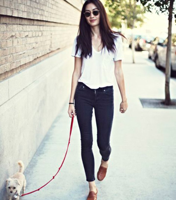 Match1. 白T恤+緊身牛仔長褲