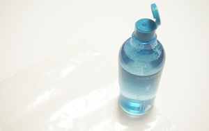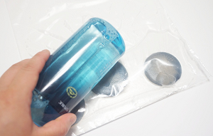把氣墊粉撲放進去,用卸妝液的瓶子當作桿子