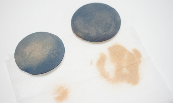 首先,把氣墊粉撲放到濕紙巾或廚房紙巾上