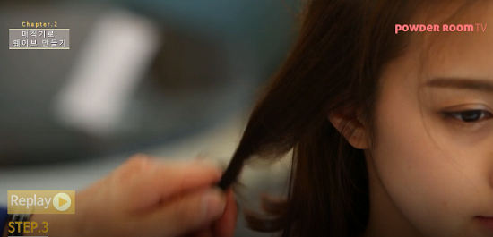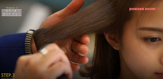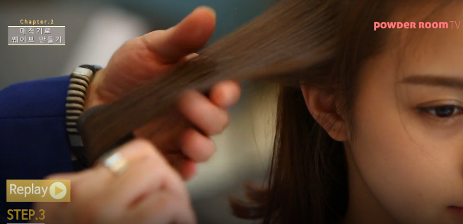 拉到頭髮未端的時候,往內捲做一個C字捲