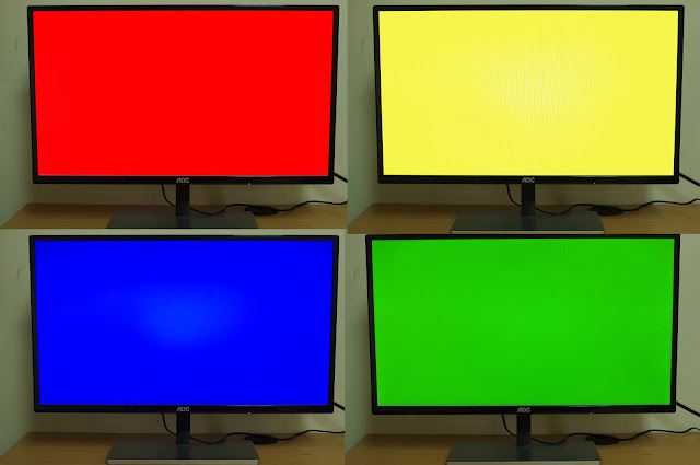 ▼接下來就來看一下,紅、藍、黃三原色外加上綠色的亮暗點檢查,很滿意的,我拿到的 I2579VM 並沒有亮點或是暗點,真是開心,看來 AOC I2579VM AH-IPS 液晶顯示器的良率應該非常高,買的人不用擔心亮暗點問題 。