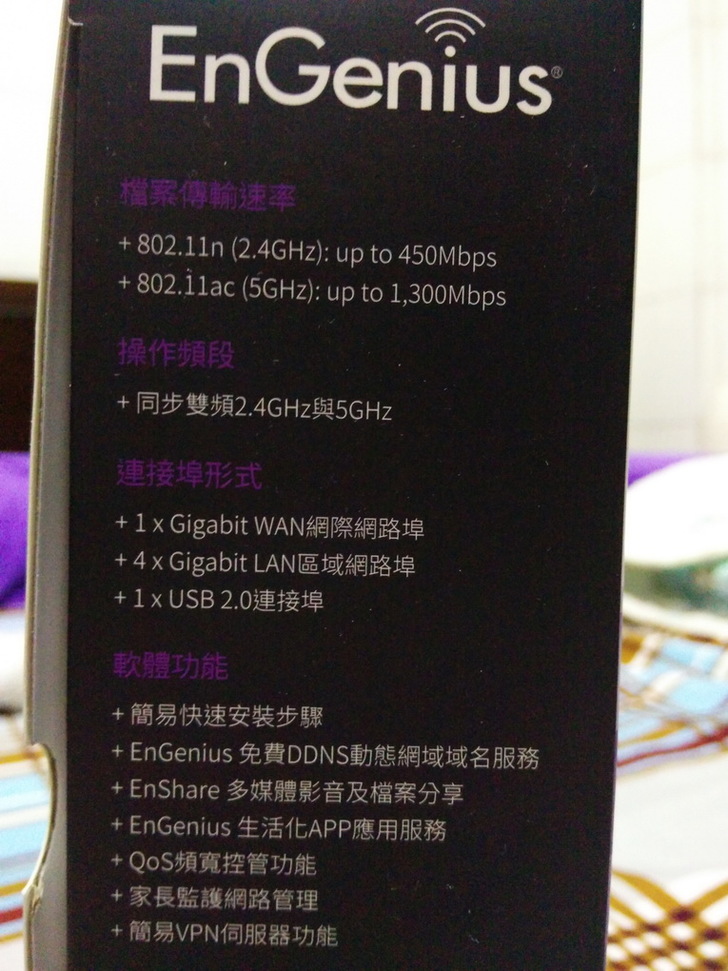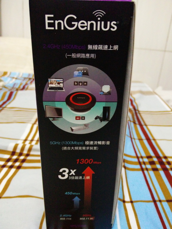 為了讓消費者在上網時,不管是有線還是無線上網的狀況下,網路訊號都很給它順順順…一路從頭飆到尾。最近收到一個Engenius推出了新的產品 “同步雙頻AC1750雲端無線路由器”。這個是由幫一些國際大廠代工的公司所自行推出的最新無線雙頻路由器。有2.4GHZ及5GHZ的雙頻道,讓訊號從此無死角,網路訊號給它順到底!