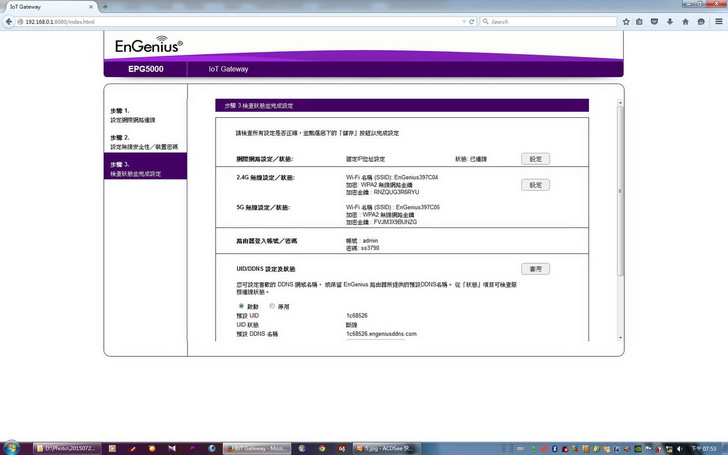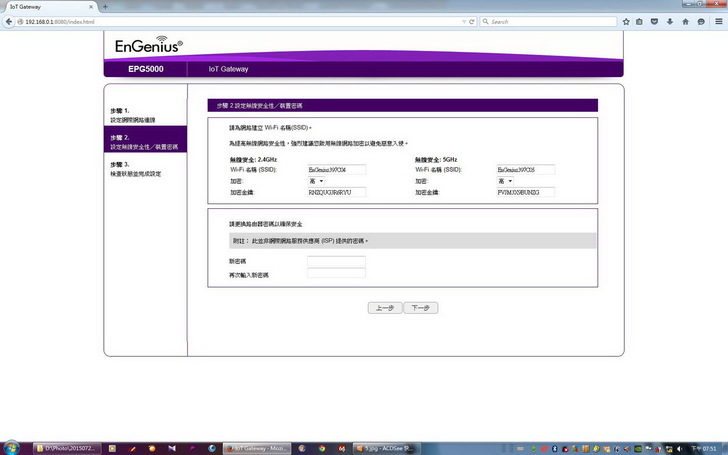 下一步就是無線網路的設定,這些設定大部份都是原廠就已經設定好了。但是建議使用者還是要另外自己重新設定,以免被人盜用,發生一些不愉快的事件~~