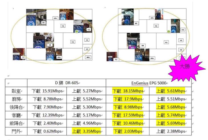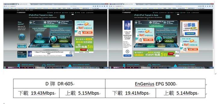 測試產品 : D牌 DR-605、EnGenius EPG 5000