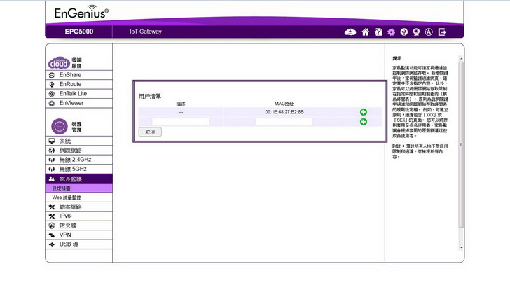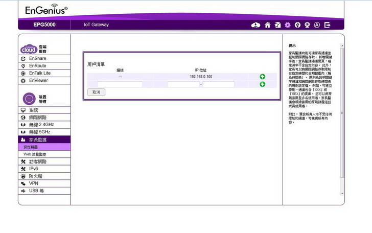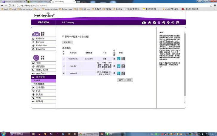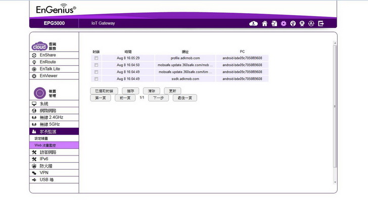 因此,EnGenius有一套機制可以設定何時可以上網,超過幾點後,就禁止上網,也可以透過管理來了解小朋友上了哪一些網站?