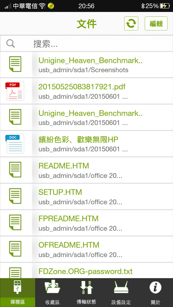 已經連上了雲端伺服器(個人的行動硬碟),可以依照所需求來讀取資料…這樣就不用帶一堆USB或是怕忘記帶資料..只要透過Enshare就可以輕鬆連上家中的個人雲端,下載你所想要的資料或是影音檔