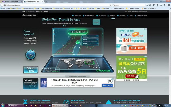 為了要測試到底速度是有多快,使用了一套軟體 “SPEED TEST”來進行有線跟無線的測試