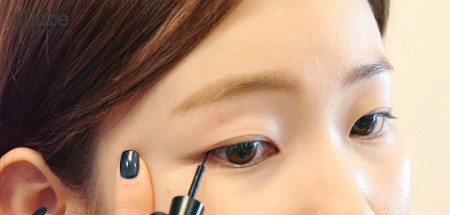 眼尾的部分再用液狀的眼線液