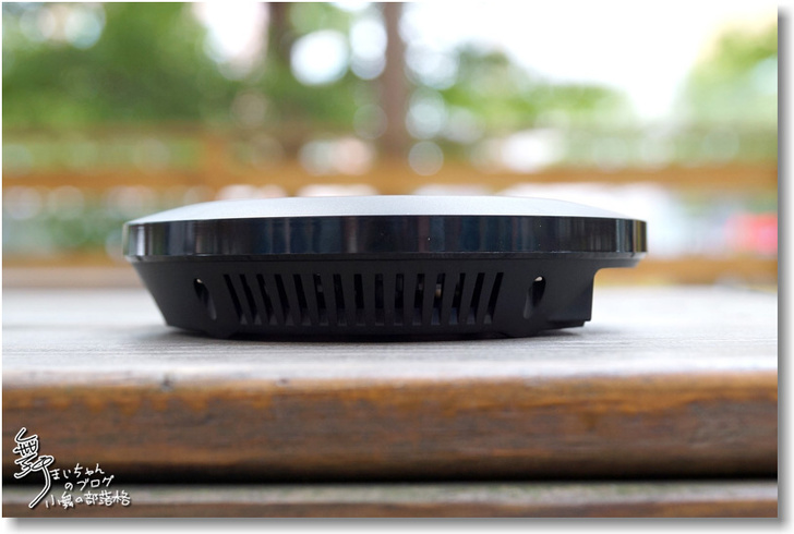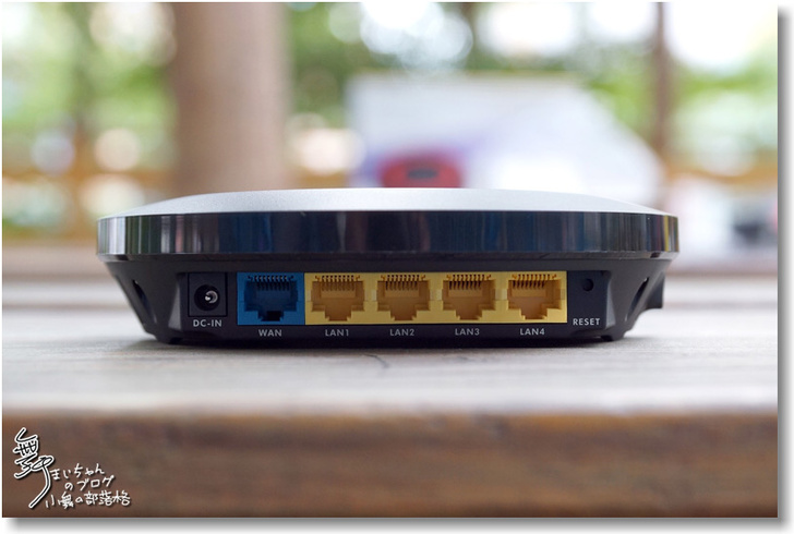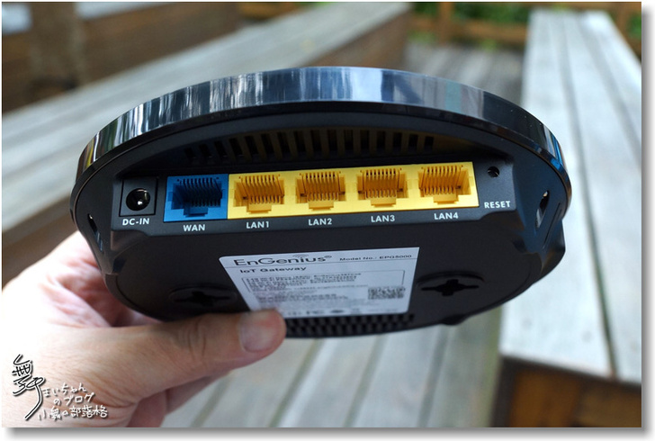▲EPG5000為圓盤型,主要的網路孔放在後部,並採用1+4的WAN/LAN埠,採用高速穩定的Gigabit,加上硬體Network Turbine NAT加速更有效發揮1000Mbps的效率;另外電源孔和Reset鍵也都在後方,但並沒有獨立開關。