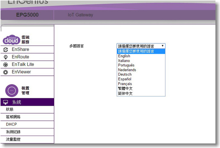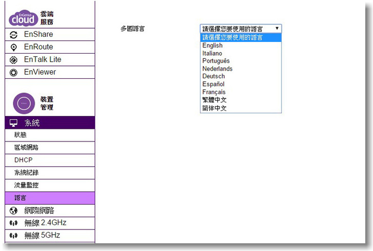 ▲《語言》選項中可選擇預設語言,在EPG5000裡共有繁簡中等9種語言