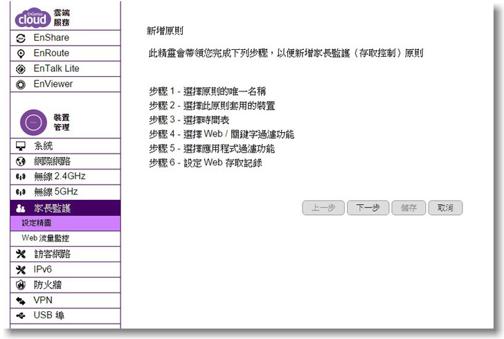 ▲擔心家中小朋友接觸到網路上的不良網路嗎?在『設定精靈』裡啟用「家長監護』吧