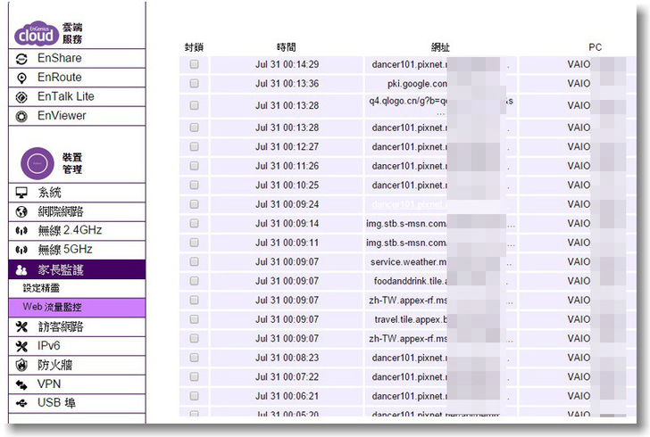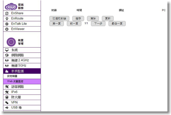 ▲『Web流量監控』能記錄上網記錄,並能對其中的記錄進行封鎖設定,把有害的網址拼除在外。