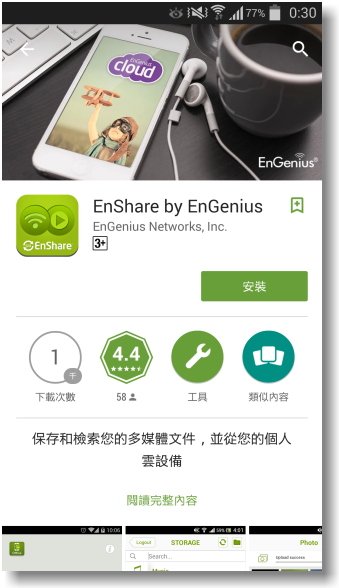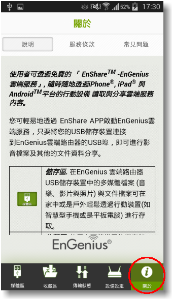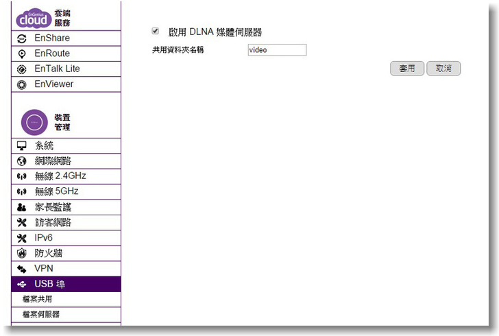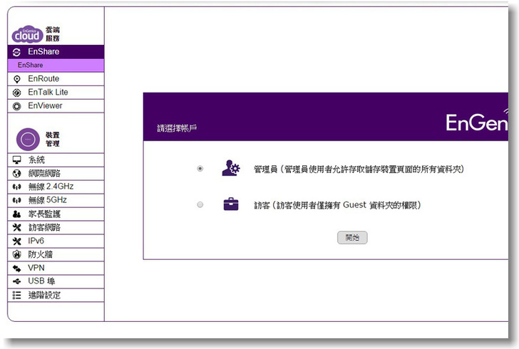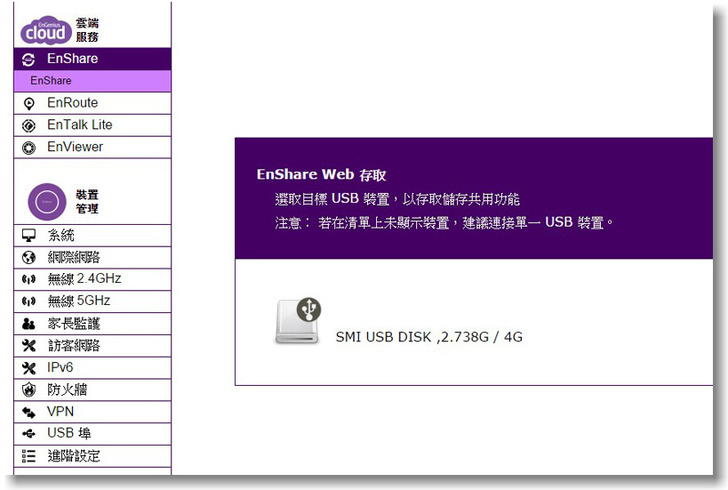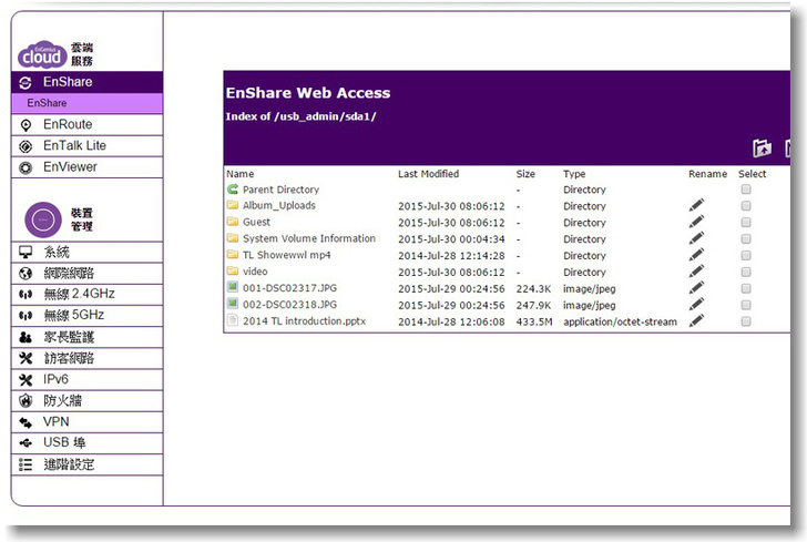 ▲EnGenius提供眾多應用程式,搭配EPG5000使用更方便,在管理介面也能進行設定。例如這款「EnShare」提供行動裝置存取資料夾