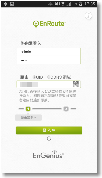 ▲填入路由器設定的帳密,另外加上UID或DDNS網域(可在EPG5000底部的貼紙找到相關資訊),就可登入;登入後選擇註冊新帳戶,設定暱稱和電子郵件、密碼即可。