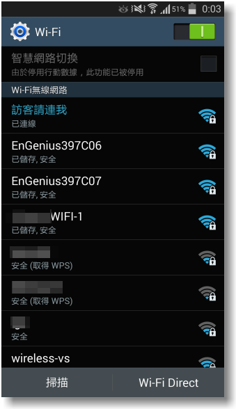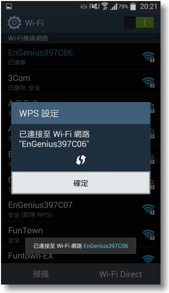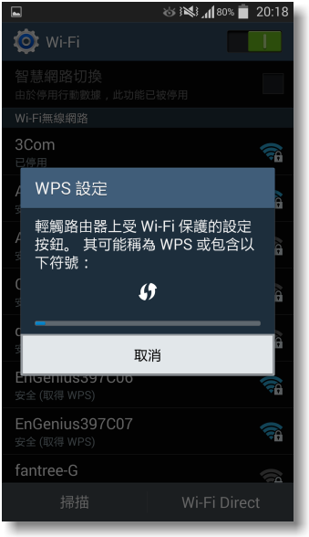 ▲連接EPG5000最方便的就是使用WPS,只要按一下,手機就可以立刻感應而連接。