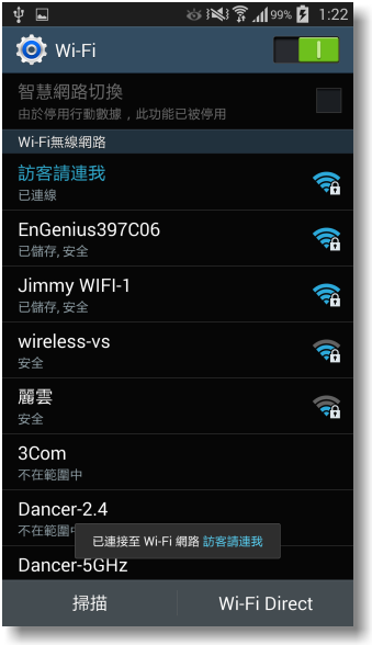 ▲就算是用密碼也能順利完成連線,還提供多個訪客權限的網路設定。