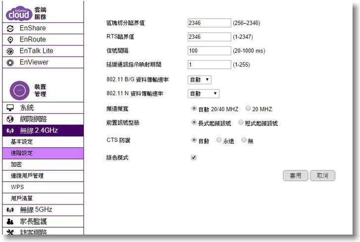 ▲還有設定無線加密模式等;另外《連線用戶管理》中能看到目前連線的設備有那些,如果有盜連的設備也能在此進行封鎖
